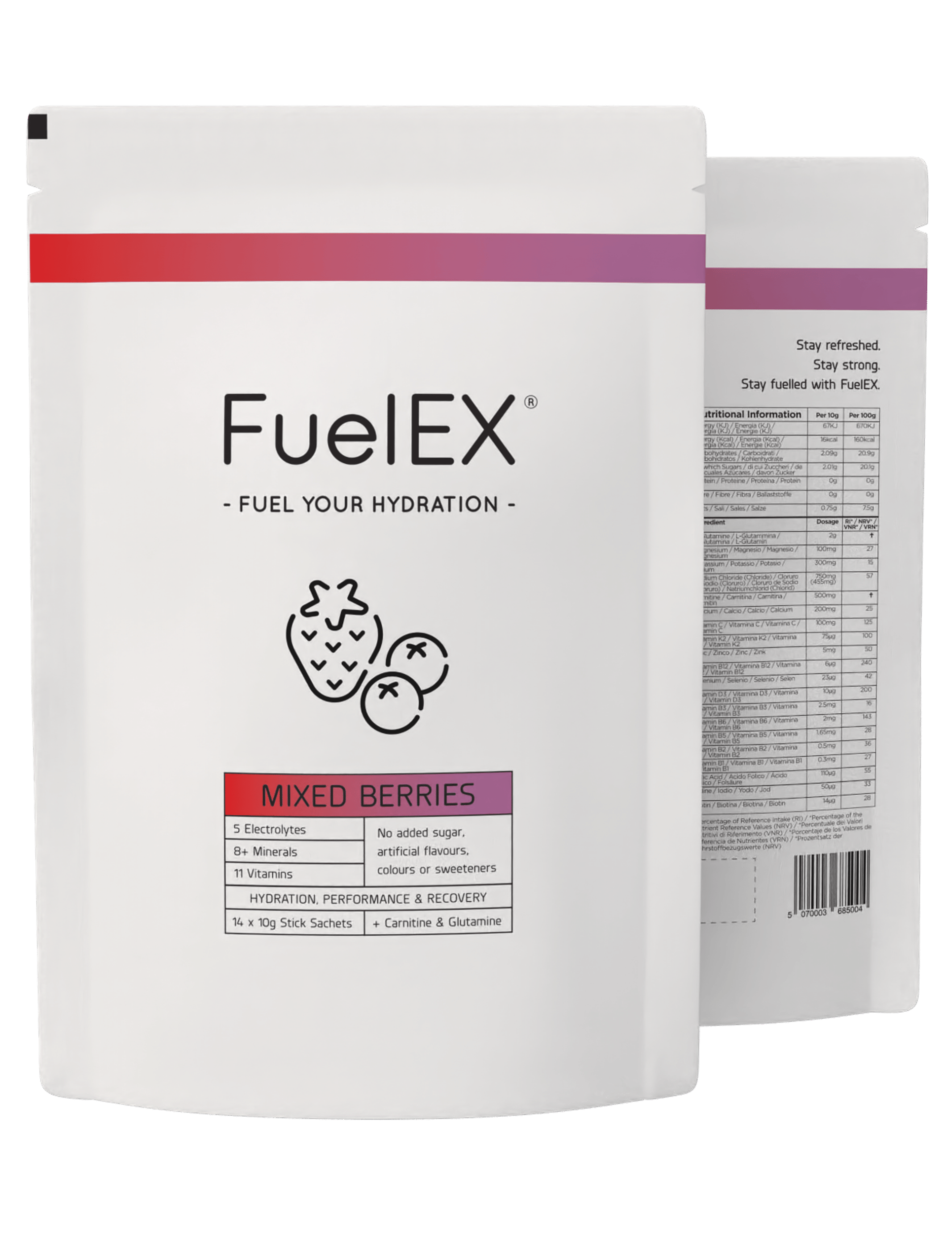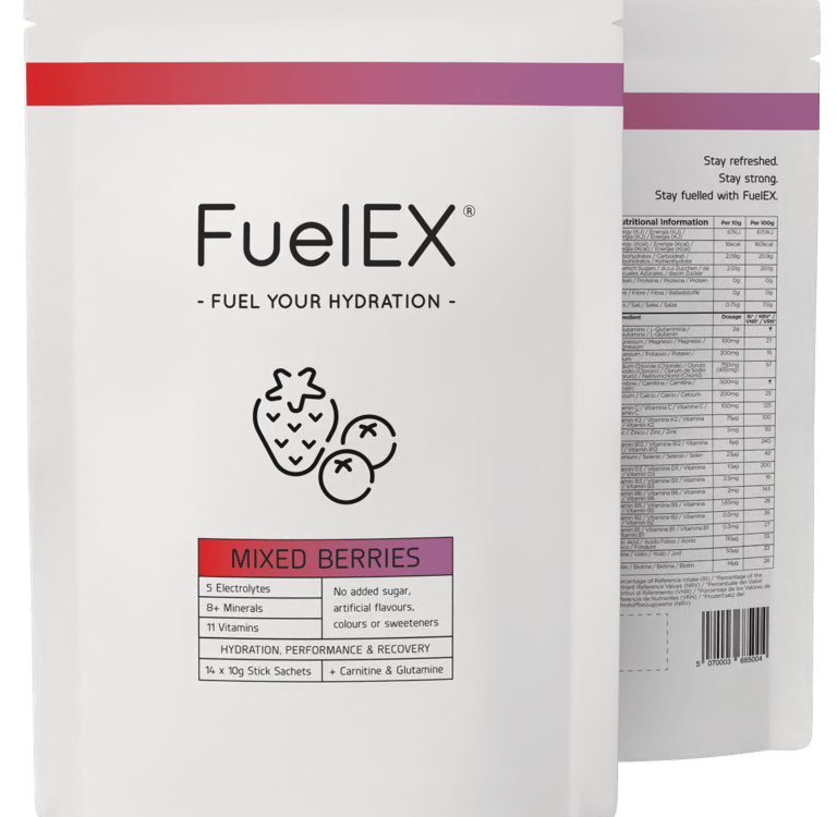 Elite athletes, welcome to the future of hydration. Powered by a premium blend of vitamins, electrolytes, minerals, carnitine and glutamine, FuelEX is designed to optimise hydration, support recovery and help you perform at your peak. Just dissolve a sachet of FuelEX in 500mg of chilled water and fuel your performance like never before.