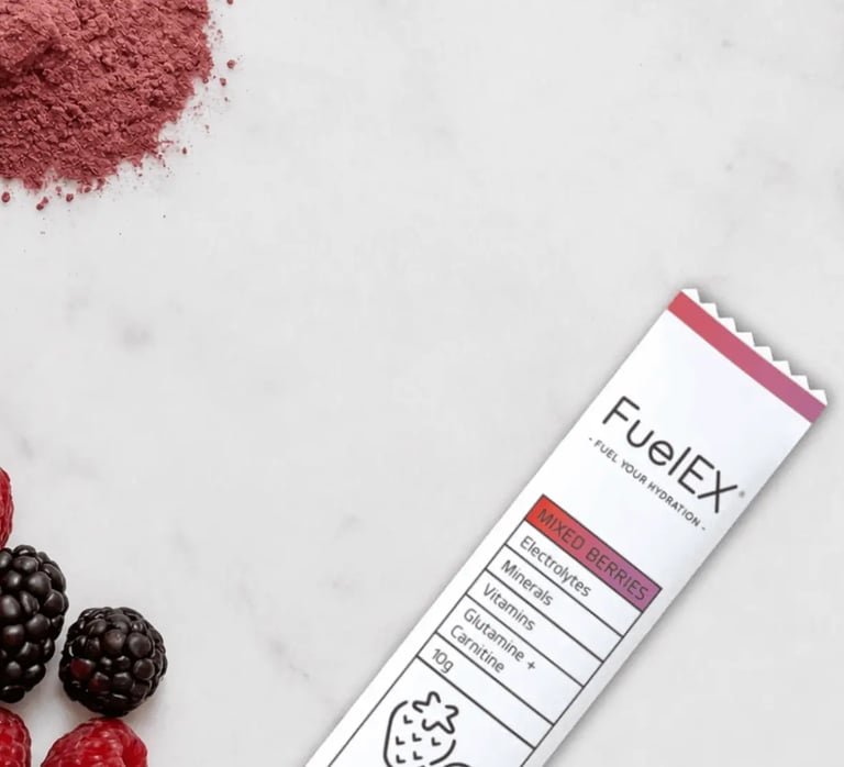 Elite athletes, welcome to the future of hydration. Thanks to its premium blend of electrolytes, vitamins, minerals, carnitine and glutamine, FuelEX is designed to optimise hydration, support recovery and help you perform at your peak. Just dissolve a sachet of FuelEX in 500mg of chilled water and fuel your performance like never before.
